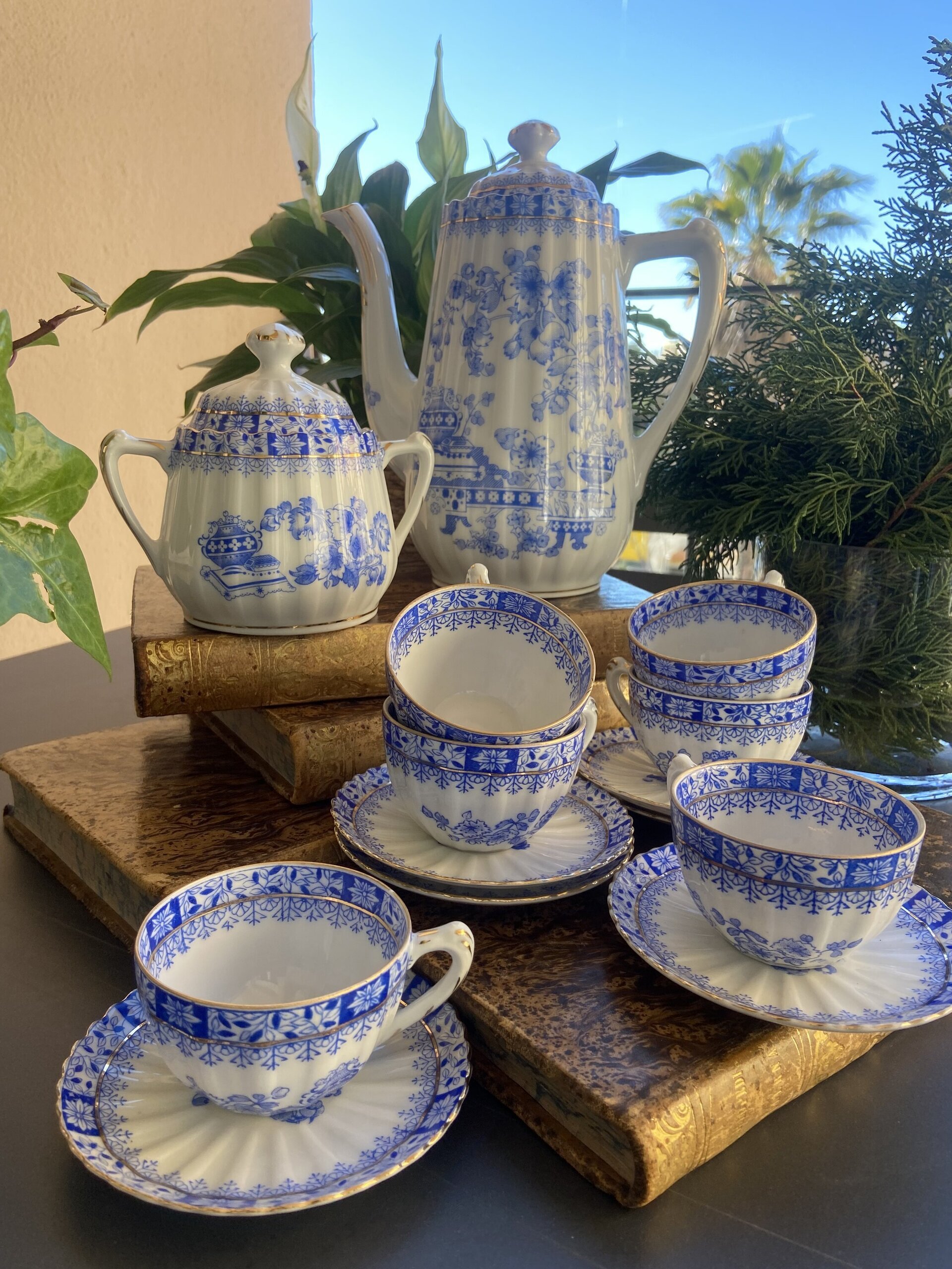 Juego de café en fina porcelana "Rosslau" mod.China Blau