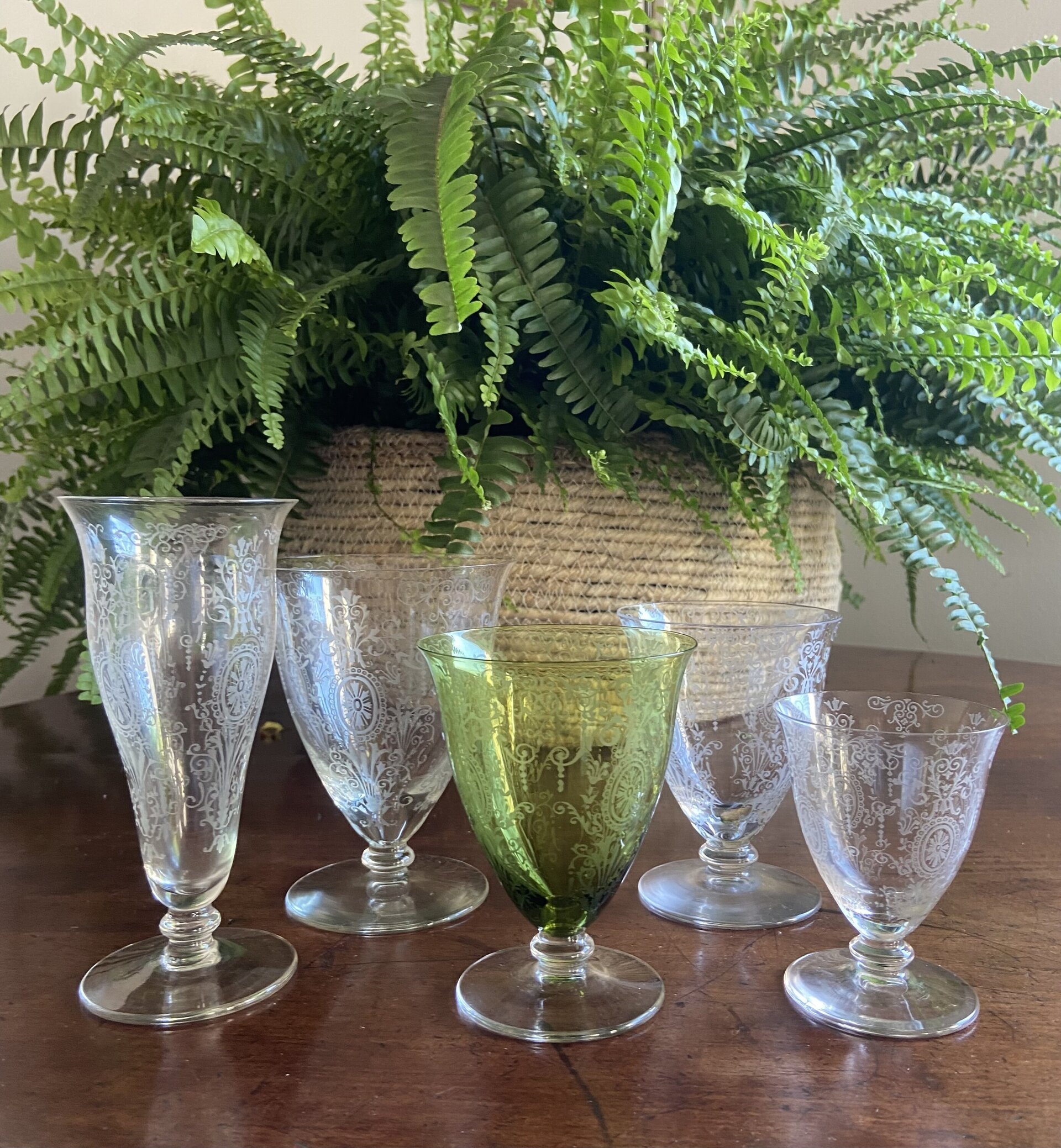 12 copas en vidrio tallado