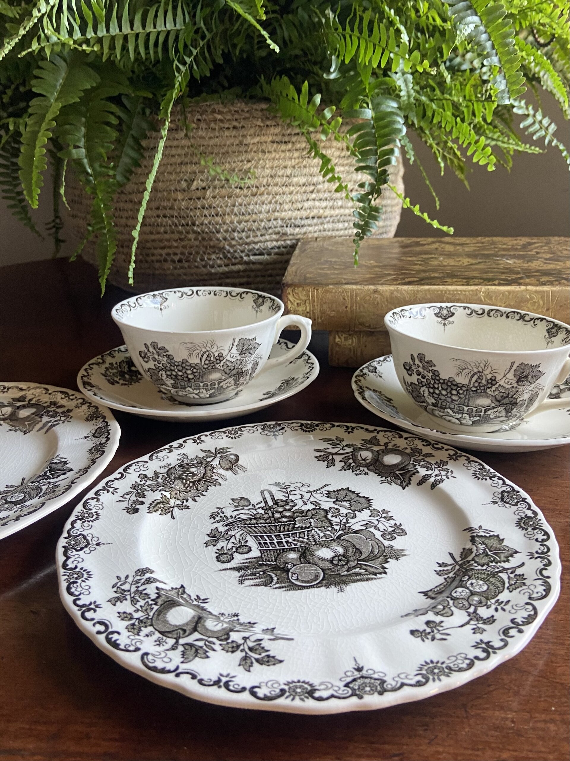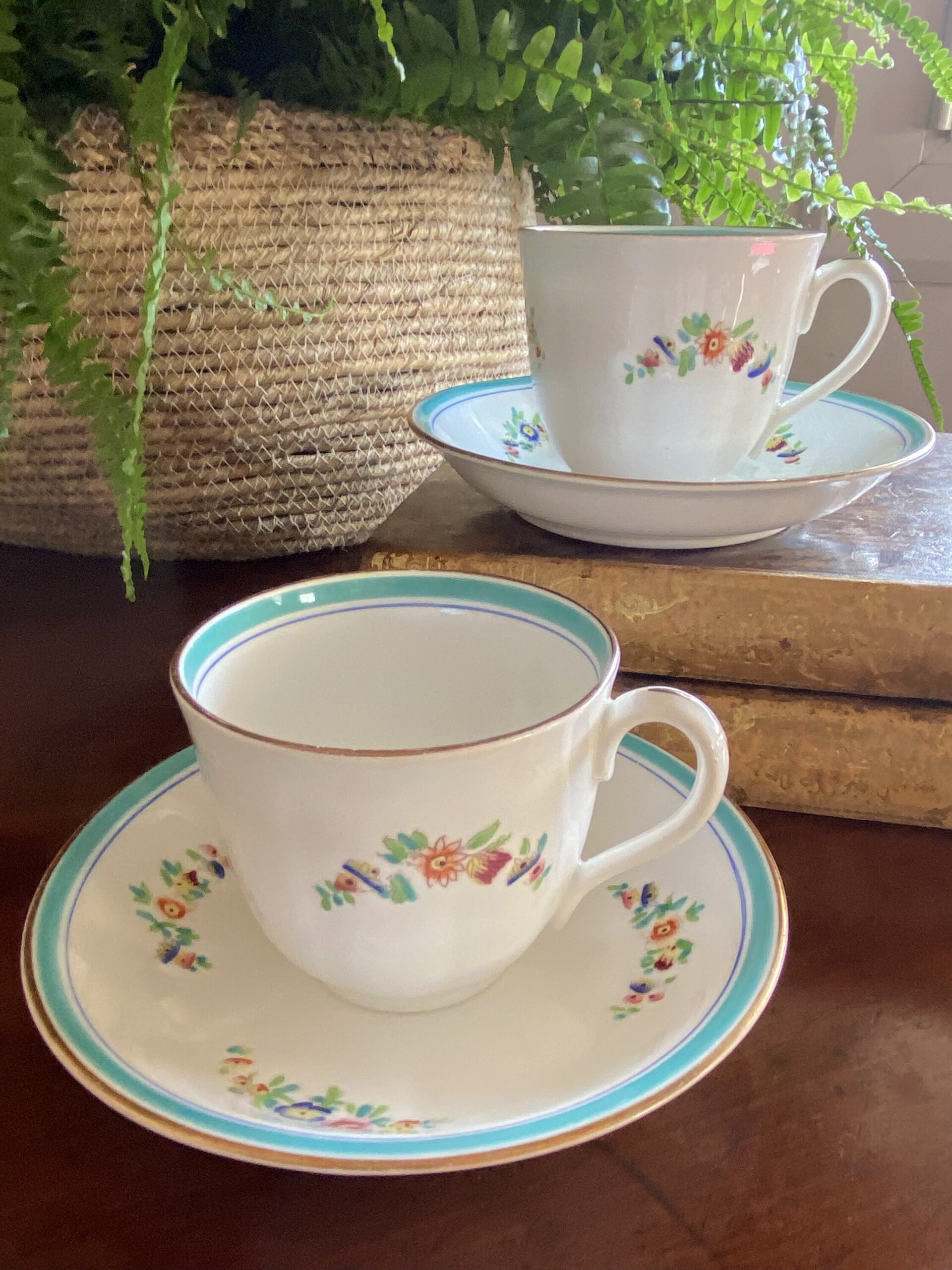 2 trios con tazas de desayuno loza francesa "Sarreguemines".