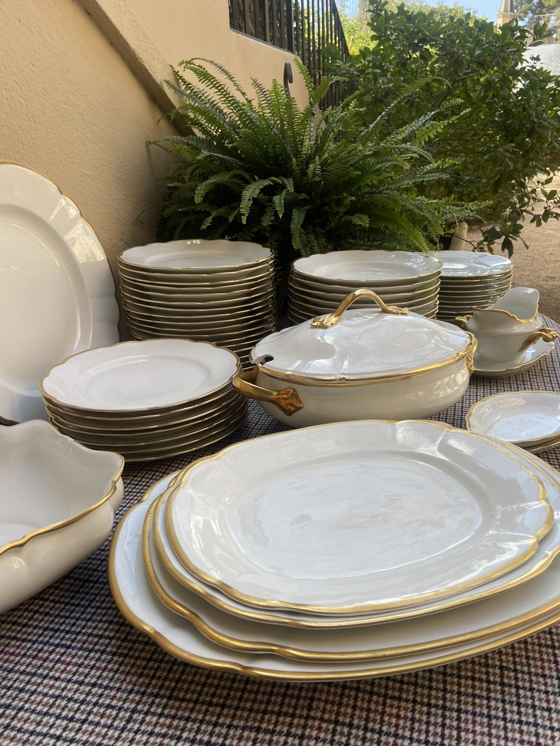 Vajilla en porcelana blanca con filo dorado "Bidasoa".