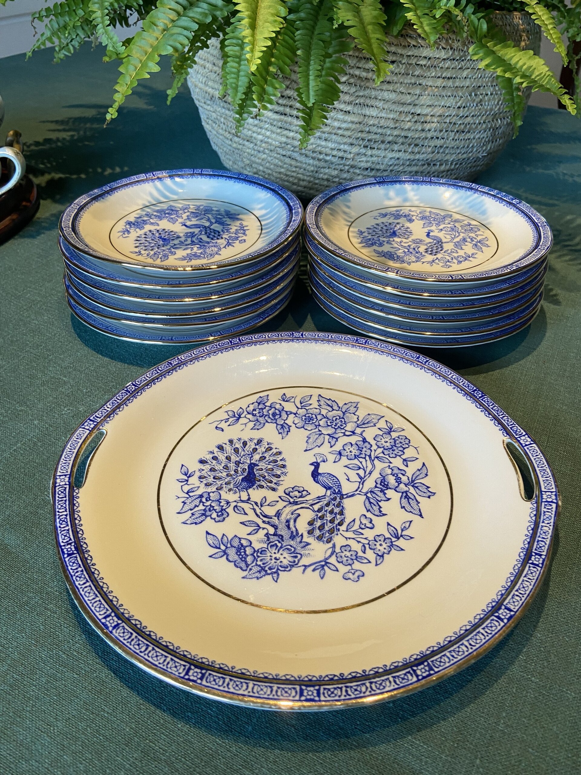AgotadoFuente y 6 platos de merienda en loza inglesa "Spode".